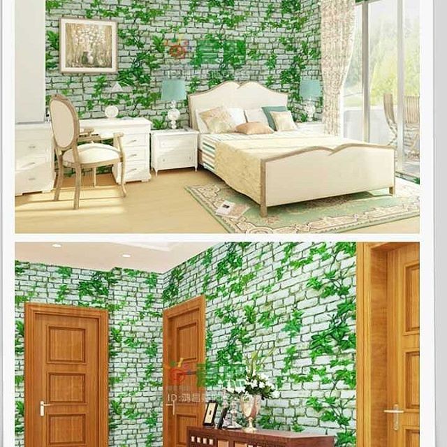 Promo Sale Wallpaper Dinding Batu Bata Daun Hijau Uk 10m Perabotan Rumah Di Carousell