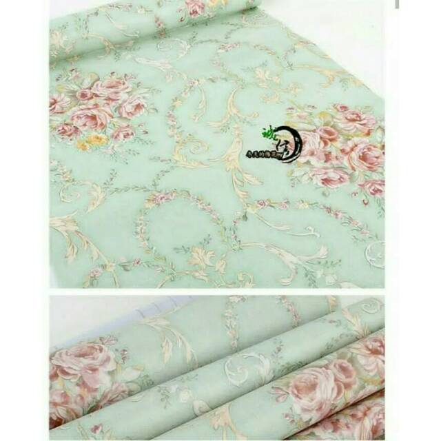 Walpaper Wallpaper Dinding Shaby Bunga Hijau Tosca 10mx45cm Shopee Indonesia