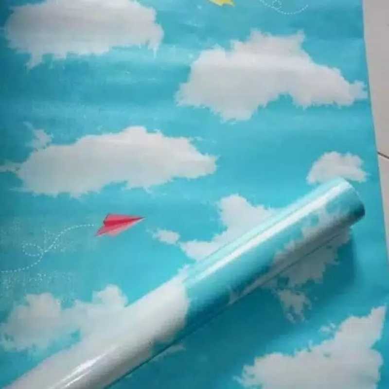 Jual Grosir Wallpaper Sticker Dinding Biru Tosca Awan Putih Pesawat Kertas Jakarta Utara Arni Online Shop Tokopedia