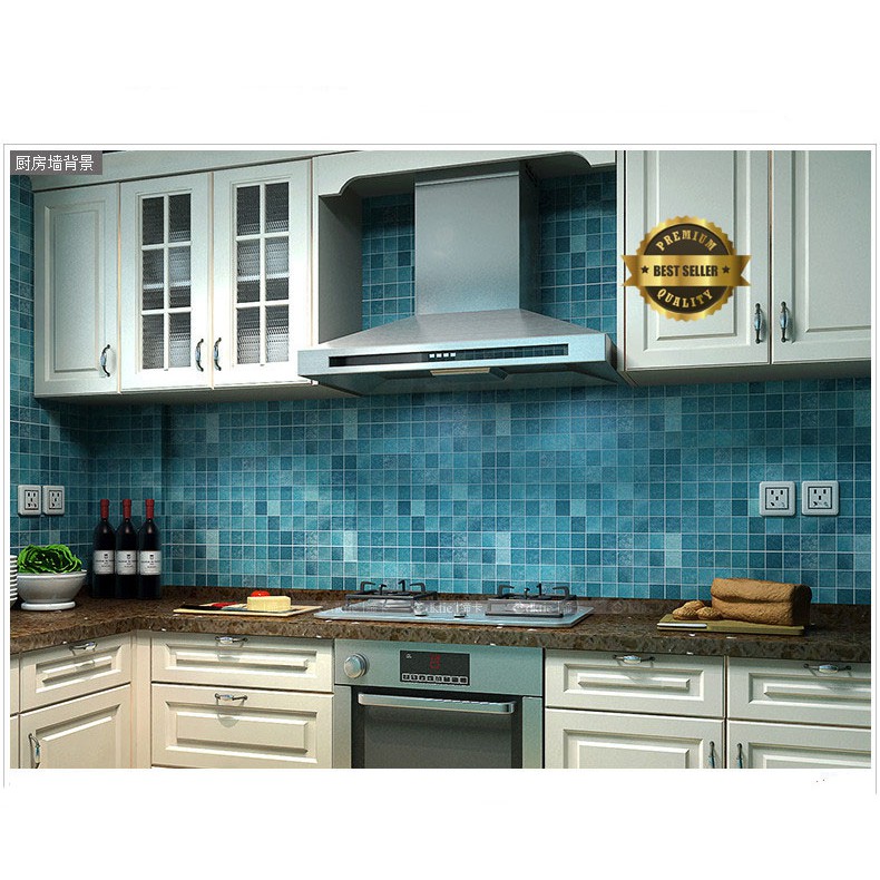 Wallpaper Stiker Dinding Dapur Biru Anti Air Anti Minyak Panas Di Lapak Binggo Bukalapak