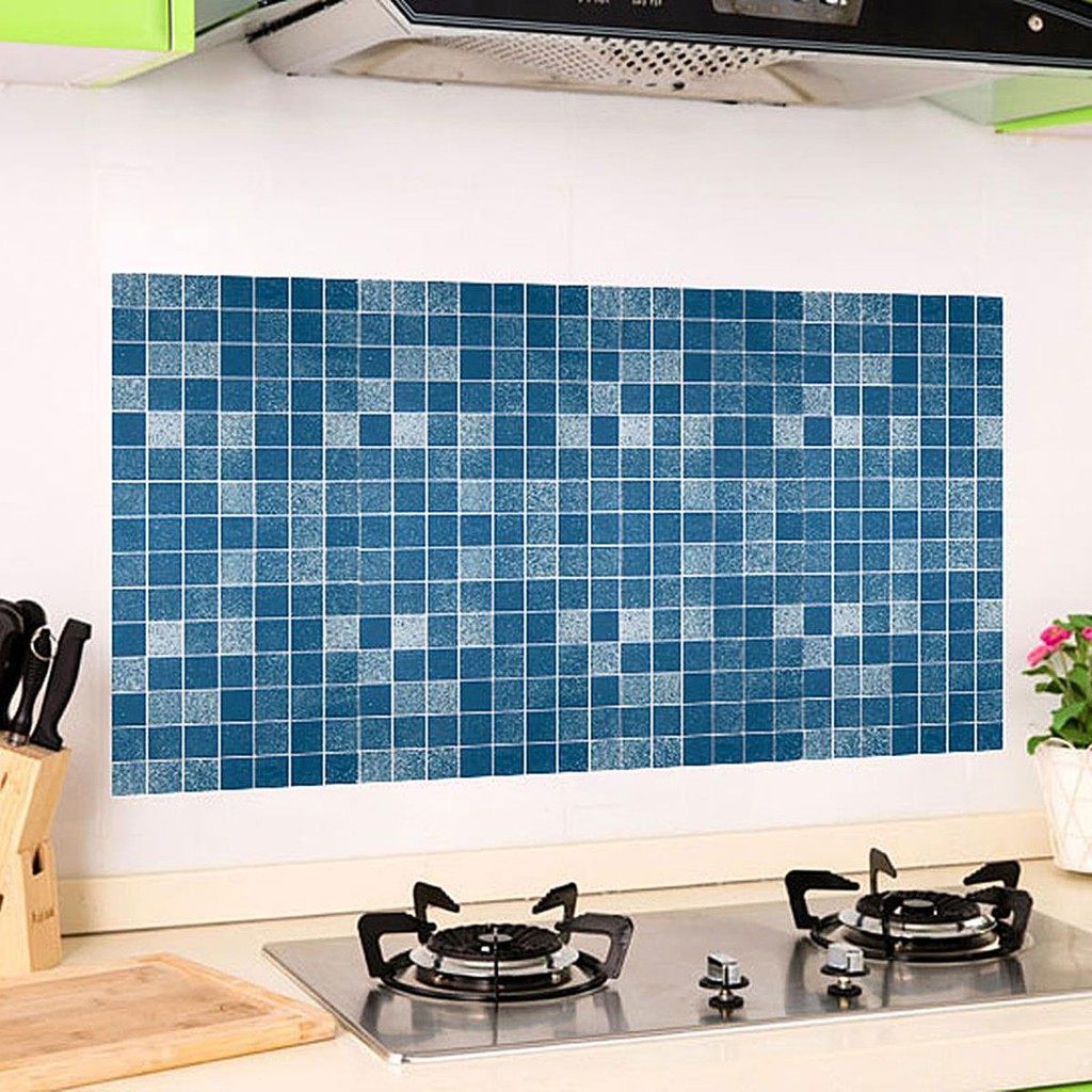 Kertas Dinding Dapur Anti Berminyak Biru Stiker Dinding Dapur Kamar Mandi Toilet Berperekat Antiminyak Lazada Indonesia