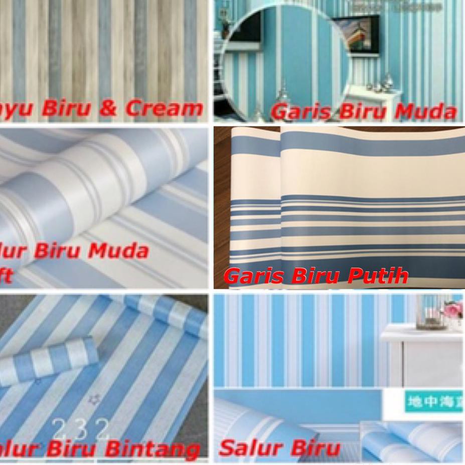 Wallpaper Dinding Garis Biru Putih Di Lapak Unggul Mart Bukalapak