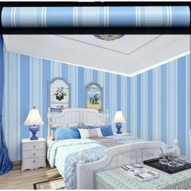 Termurah Dan Bisa Cod Grosir Wallpaper Dinding Murah Kamar Garis Biru Putih Bagus Elegan Sedia Juga Stiker Dinding Ruang Tamu Stiker Dinding Bts Stiker Dinding Kamar Tidur Dewasa Stiker Dinding Kamar Tidur Remaja Lazada