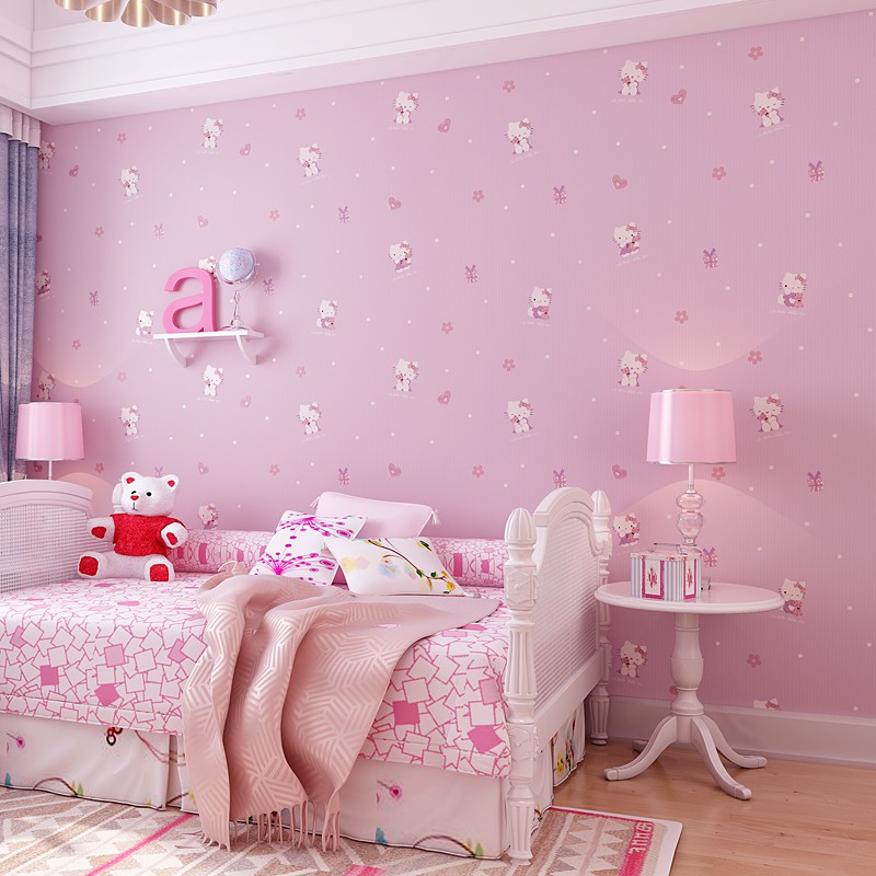 Wallpaper Non Woven Motif Kartun Hello Kitty 3d Warna Pink Untuk Kamar Anak Perempuan Shopee Indonesia